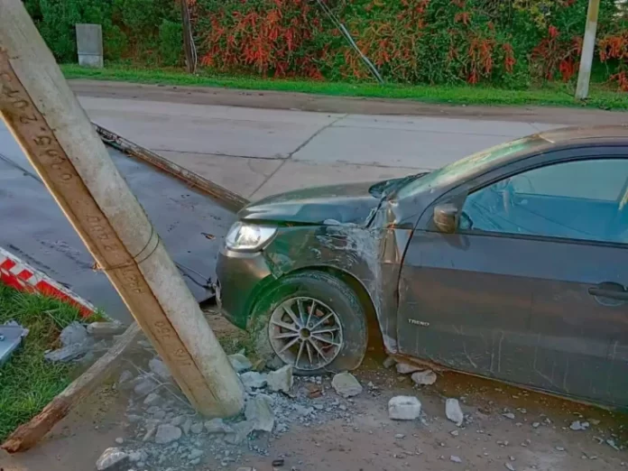 Un fuerte estruendo alertó a los vecinos de la zona de Avenida 98 y calle 83 bis, cuando el conductor de un Volkswagen Gol Trend perdió el dominio de su vehículo y terminó despistando hacia la acera, donde chocó violentamente contra una columna de cemento.